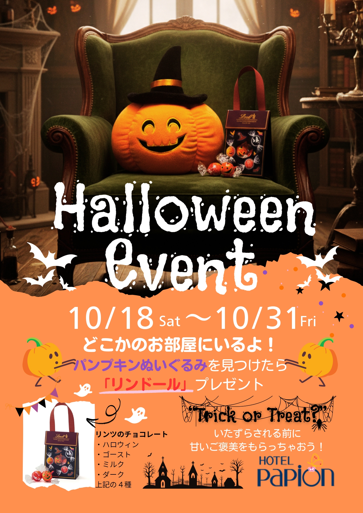 ホテルパピオン31室のどこかに…ジャックオーランタンがいるよ♪